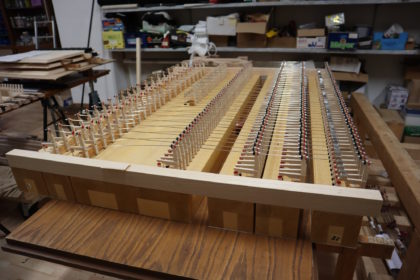 The manual action is mechanical, light, sensitive, and precise. The swipe rails or abstracts are made of thick-grained spruce wood, guided by guides to prevent oscillation during playing. All parts of the manual action are made of wood, except the axles on the shaft boards, which are made of steel tubes. The organ has 19 rollerboards.