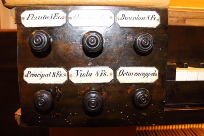 The organ’s distinctive feature is the ‘third hand – terza mano’, which refers to the octave coupler in the manual’s discant, originated in Italian organ-making in the late 18th and 19th centuries. Goršič’s technical solution is sympathetically simple.