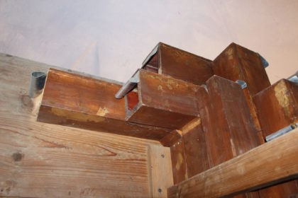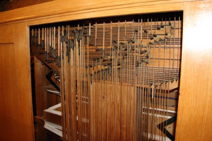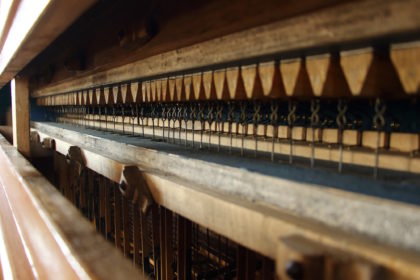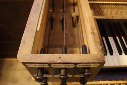 The sound and technical treatment of the pedal, which repeats the so-called South German tradition, and the mechanics, which are very simple in the old way (today often called “Italian”), are also special, yet very precise. Similar mechanics were made between 1300 and 1800 by Italian and South German craftsmen. Such mechanics are a good way of encouraging a measured finger stroke, as rough, inappropriate playing causes serious rattling. The measurements of Goršič’s keys are also interesting, showing that the piano-like long key shape was not universally accepted even towards the end of the 19th century.