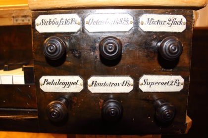 - The Bourdon 8′ and Flavto traverso 4′ manual registers and the Subbass 16′ pedal register were reconstructed at the time of restoration.