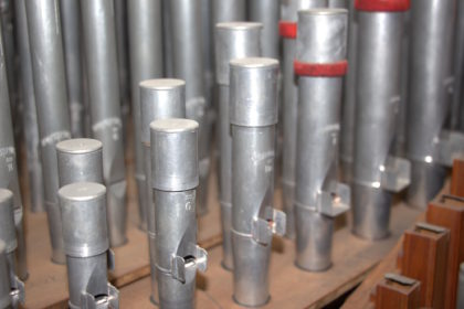 It turned out that we could incorporate a total of 14 registers or sound colours from the old Goršič organ from Vipava. Among these registers, ten were metal pipes of high quality, made before 1892 in the German organ workshop Gebrüder Link, and four registers were made of wood that Franc Goršič bought at his supplier in the Tuhinj valley.