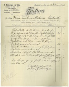 The legacy also contains some preserved invoices showing where he ordered pipes and other materials, e.g. Aug. Laukhuff, 17.10.1914, and Meisinger & Sohn FACTURA, 12.2.1915.